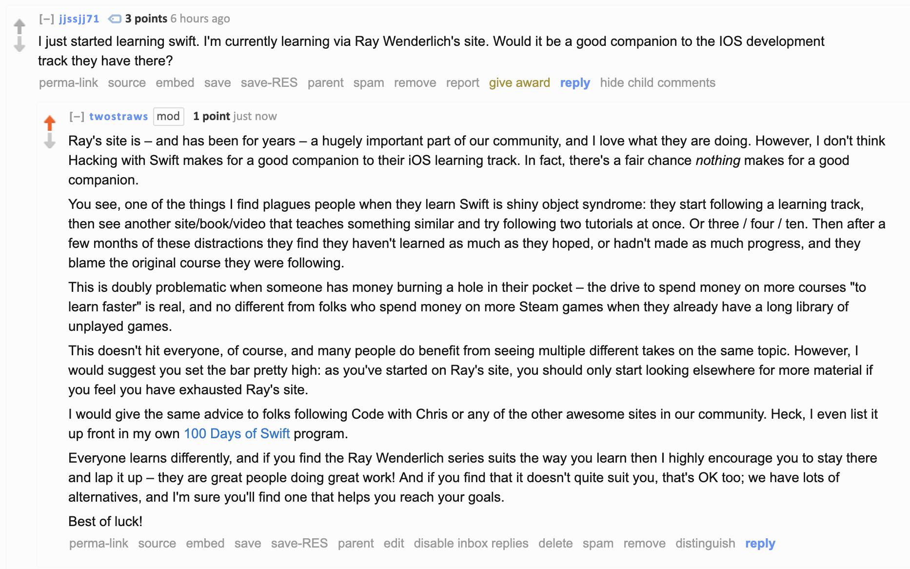 Paul Hudson On Twitter Someone On Reddit Asked Whether I Thought Hacking With Swift Was A Good Companion To The Rwenderlich Ios Learning Track Here S My Answer Https T Co Rb3cnbrhrh Twitter